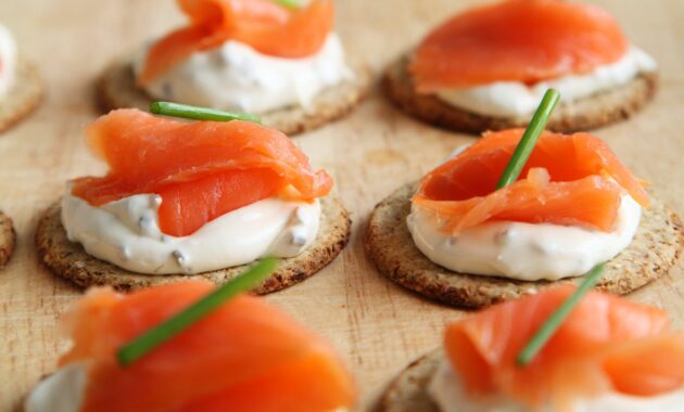 Berbagi macam topping biasanya ditempatkan pada potongan roti bakar atau biskuit sebagai bahan dasar canape.